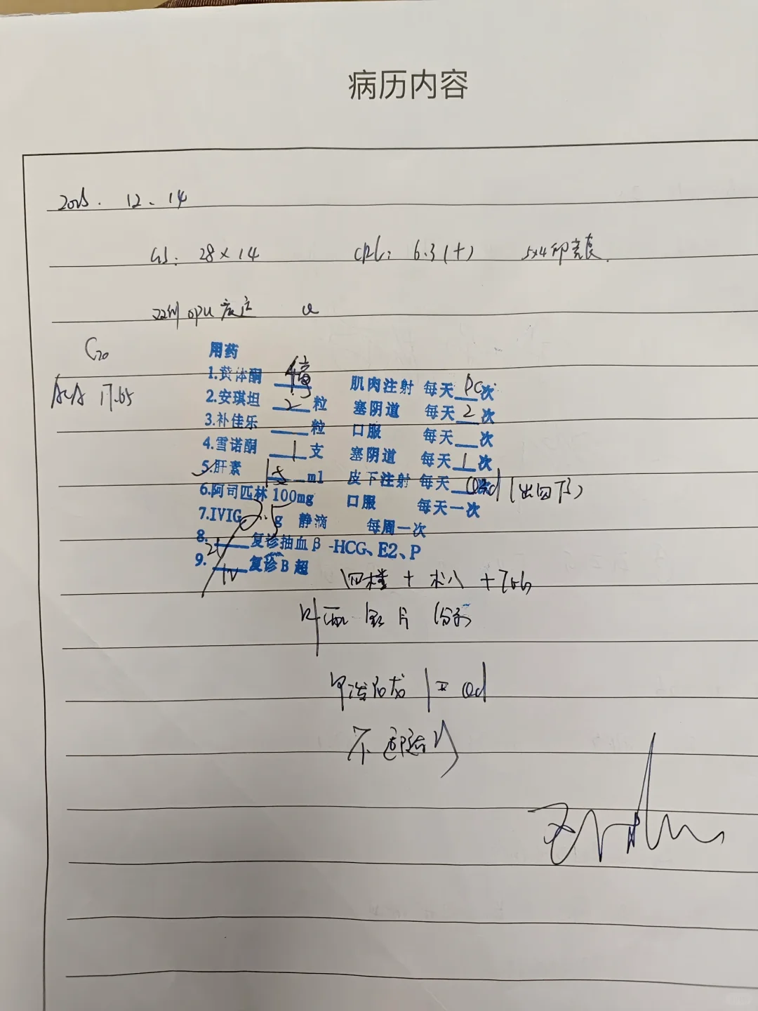 终于等到移植后的一超了 这次b超没有单子也看不到屏幕 是纯手写 听到医生报大小 卵黄囊 还说有胎心 忍不住开心笑了一周后还要二超 二超就有单子了