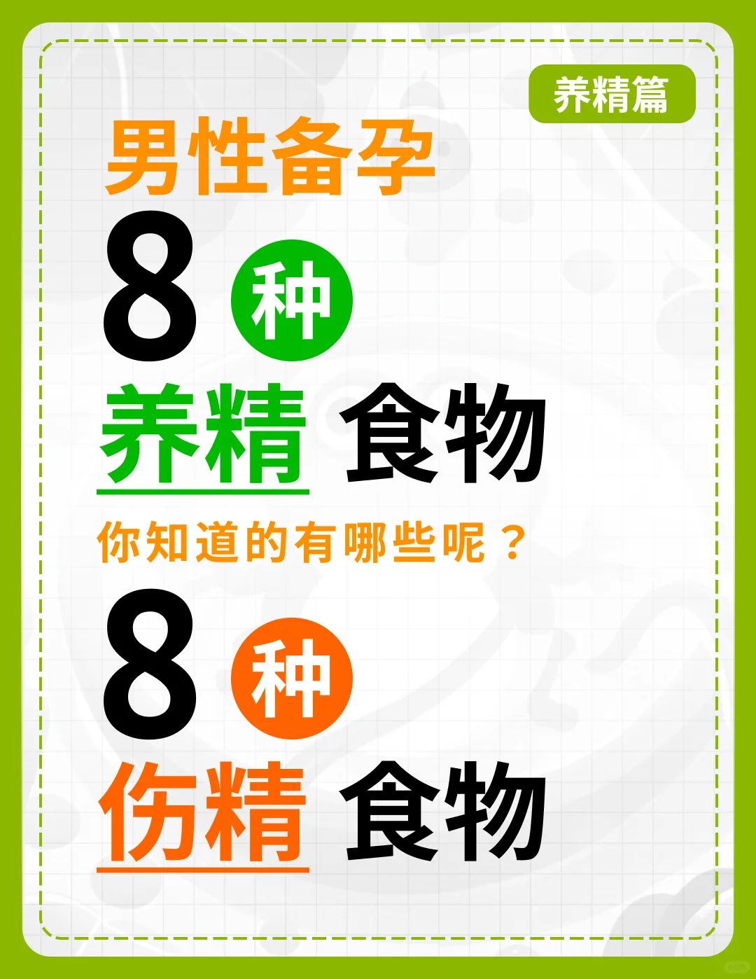 男性备孕指南 | 8种养精食物与8种伤精食物推荐,提升代怀生男孩成功率